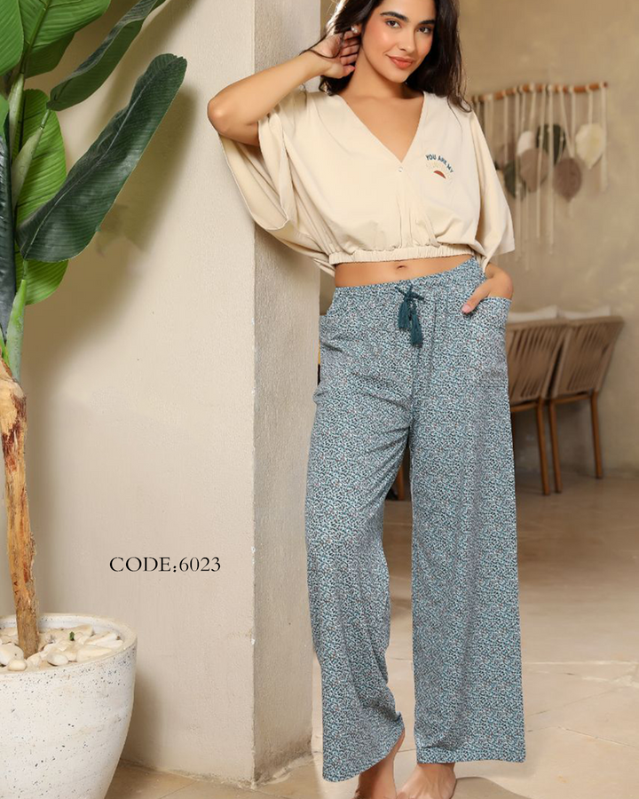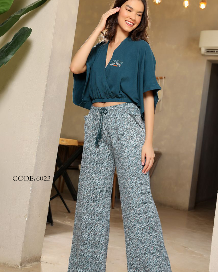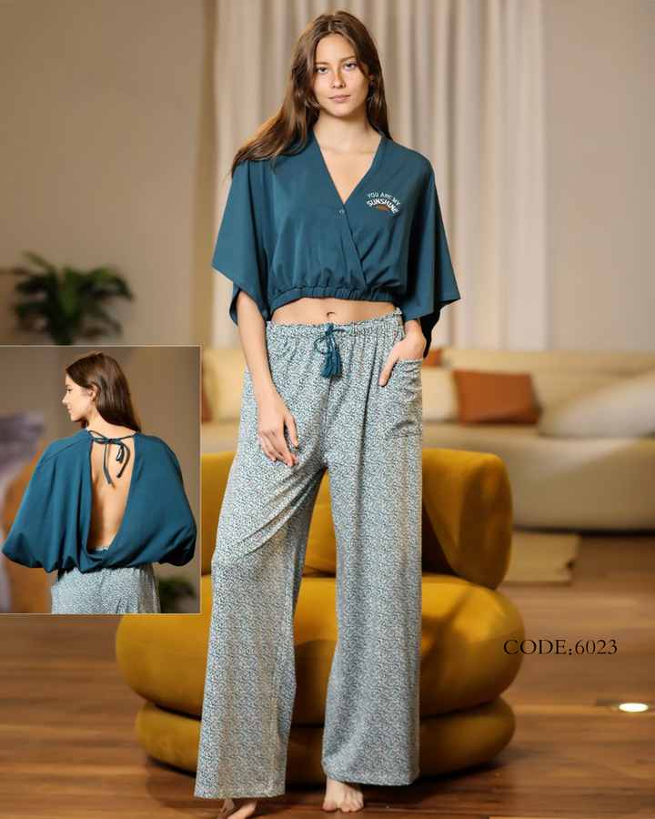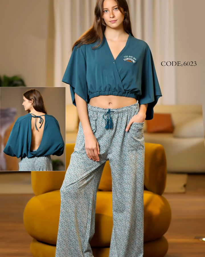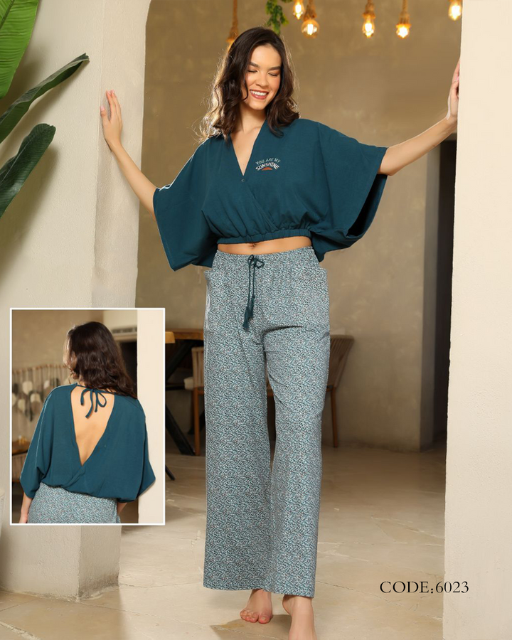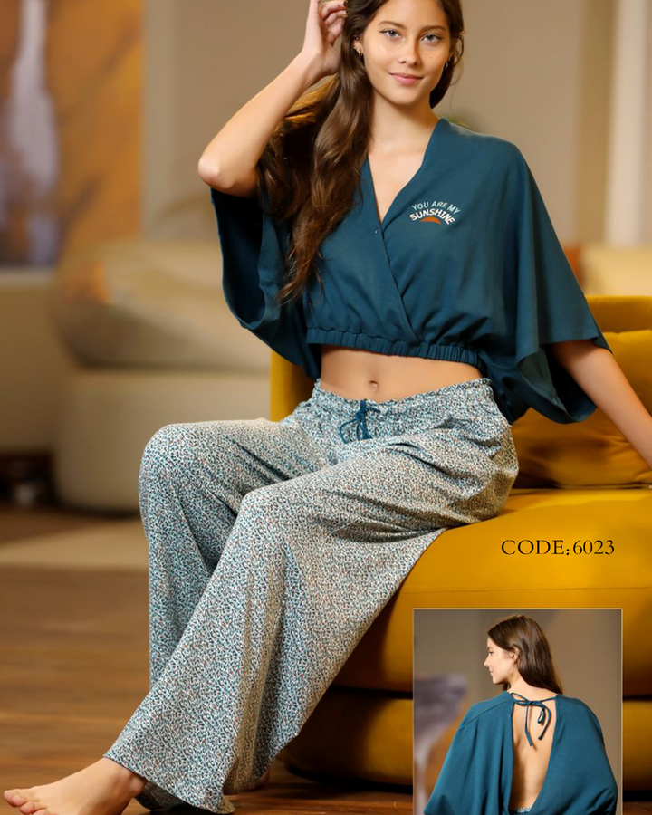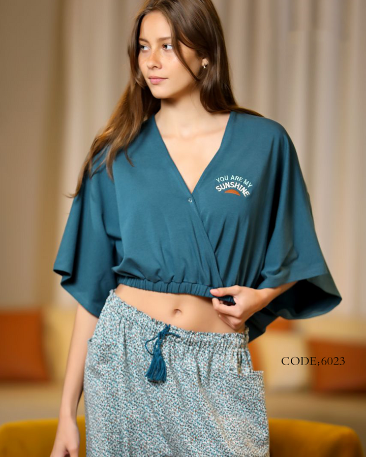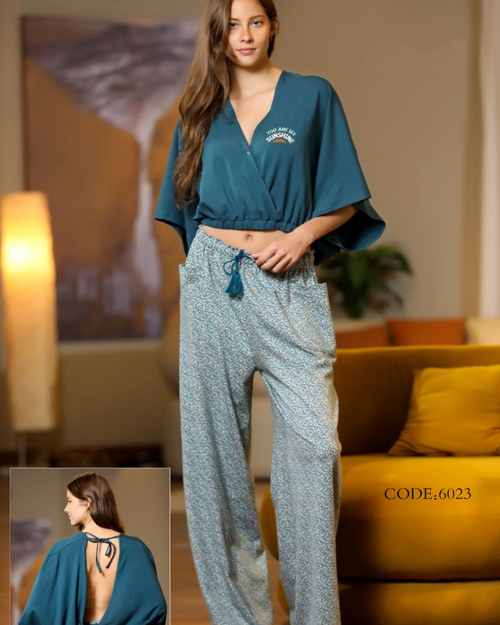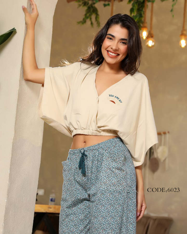 بيجامة حريمي صيفي 6023 بنطلون ونص كم