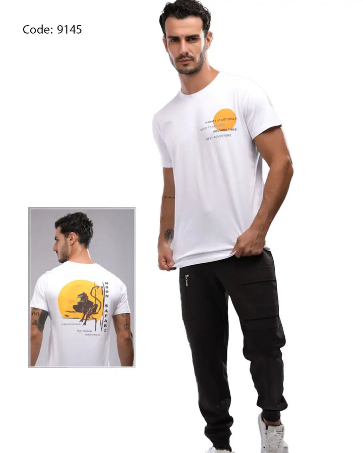 البنطلون: مصنوع من قماش ميلتون القطني، وهو نسيج محبوك يتميز بنعومته ومتانته. يوفر الراحة وحرية الحركة، ومناسب للطقس الدافئ. التيشيرت: مصنوع من القطن، وهي خامة طبيعية تسمح بمرور الهواء وتحافظ على انتعاش الجسم، مما يجعله مثاليًا لفصل الصيف.