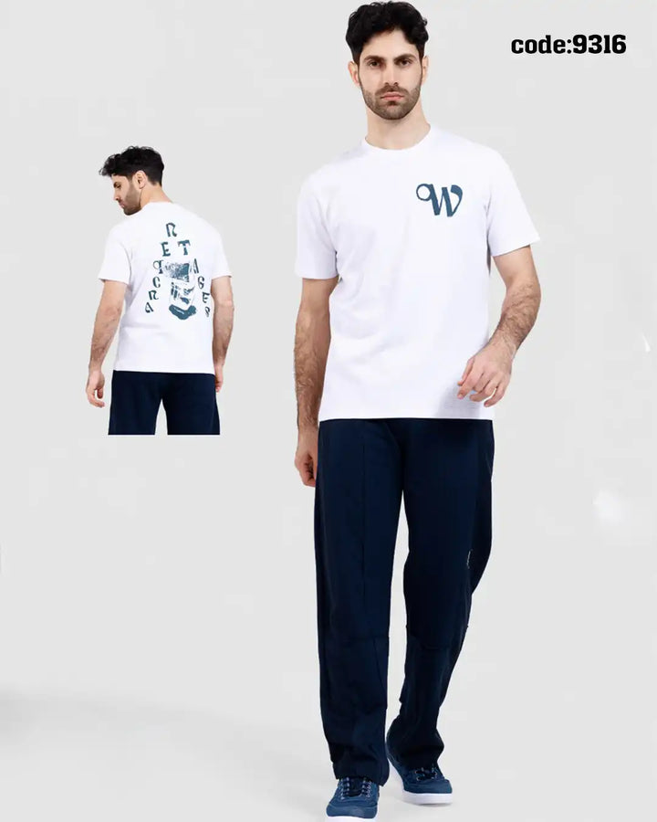 ترنج صيفي قطعتين مريح وعصري، يتكون من تيشيرت رواند قطن وبنطلون قطن ميلتون. يتميز التيشيرت بقصة رواند مريحة وأكمام قصيرة، بينما يأتي البنطلون بقصة مريحة وخصر مطاطي لسهولة الارتداء.