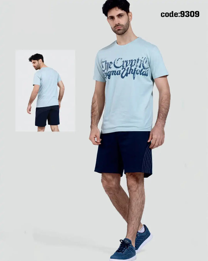 الشورت: مصنوع من أجود أنواع القطن ميلتون، وهو نسيج يمتاز بنعومته ومتانته. يوفر هذا النوع من الأقمشة تهوية ممتازة وراحة عالية، مما يجعله مثاليًا للارتداء اليومي أو ممارسة الرياضة. التيشرت: مصنوع من القطن الخالص، المعروف بخصائصه المريحة والناعمة على البشرة. القطن يسمح بمرور الهواء ويمنحك شعورًا بالانتعاش طوال اليوم.